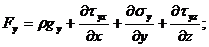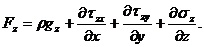 Суммы плотностей массовых и поверхностных сил, действующих на элементарную частицу,