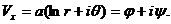 2. Рассмотрим характеристическую функцию силового потока: Для отделения действительной части от мнимой воспользуемся формулой перехода к цилиндрическим координатам: ,тогда можно записать Полученным параметрам отвечают траектории напряжений – радиальные прямые, расходящиеся под углом и эквипотенциальные линии – окружности, что вместе может соответствовать "источнику" (при ) или "стоку" (при ) температурных напряжений при точечном нагреве или охлаждении плоского тела (рис.3.22).