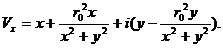 Рассмотрим вначале пример возможного сложения двух потоков для задачи обтекания внутренними усилиями кругового отверстия. В этом случае характеристическую функцию силового потока можно получить от наложения прямолинейного потока на плоский диполь В итоге имеем где коэффициент концентрации напряжений на удалении от дефектов радиус кругового отверстия.